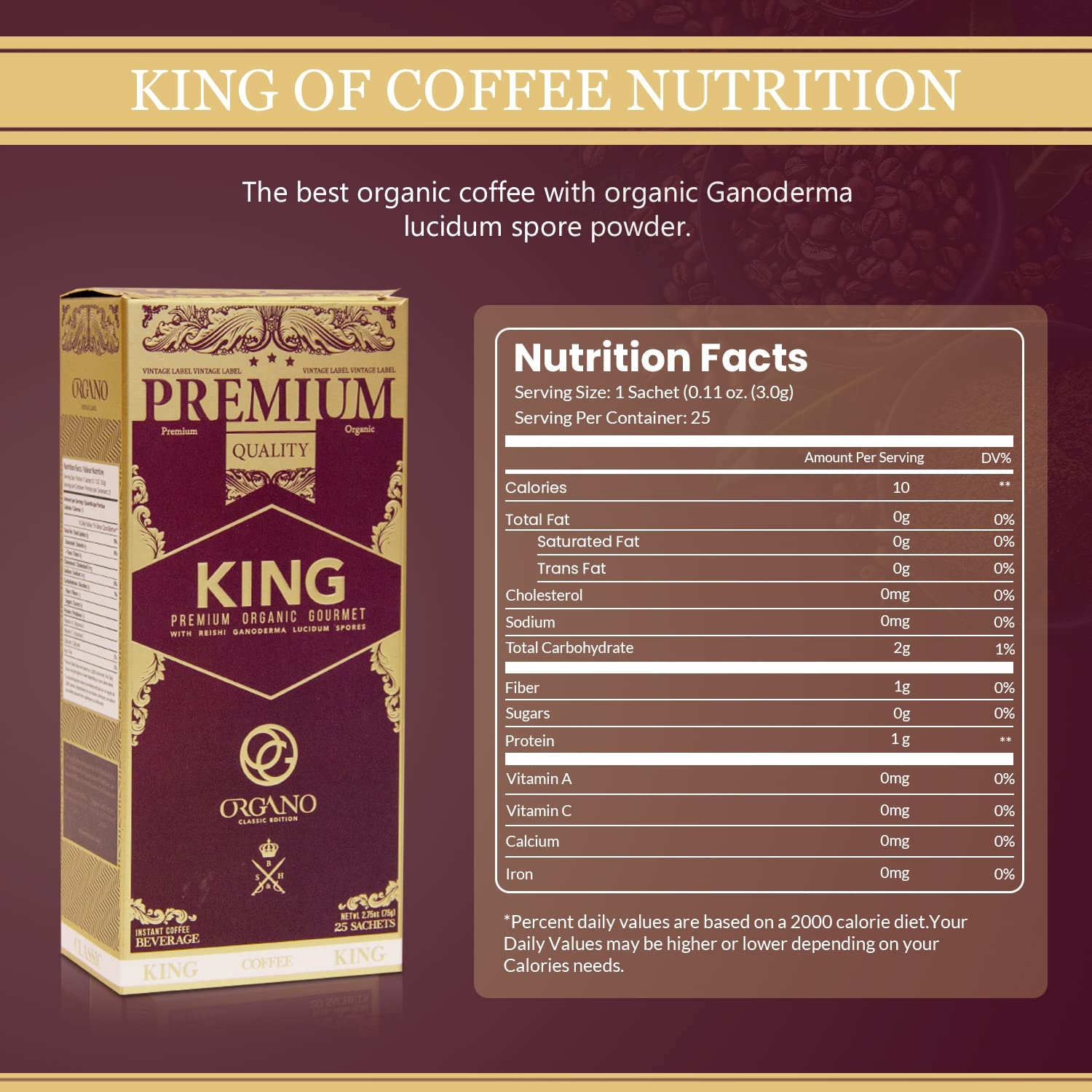 Organo King Of Coffee Organic Premium Ganoderma Lucidum U.S.A. Packaging (1 Box)